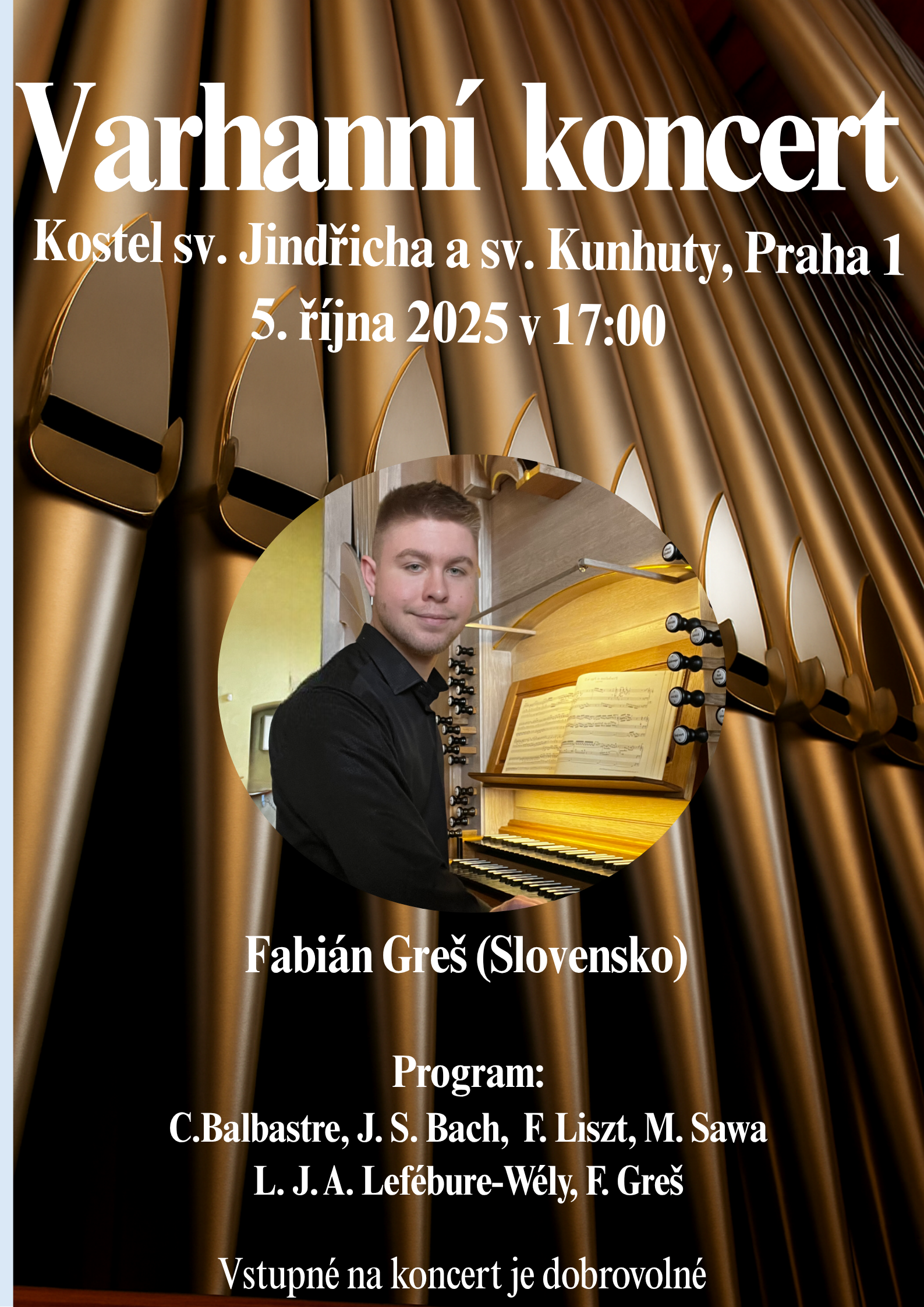 V nedeľu 5.10. o 17:00 sa v našom kostole uskutoční organový koncert, na ktorom vystúpi organista Fabián Greš zo Slovenska.